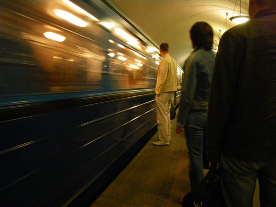 So suchte ich mir ein paar Clubs raus, machte langsam und schlief auch noch ’ne Runde. Dann vor Mitternacht stopfte ich mir ein paar Quarkkeulchen in den Mund, duschte und machte mich zu Ausgehen bereit. Die Discowahl fiel auf „Propaganda“. Morgen sollte ich Pacha versuchen. Die Metro fahrt bis gegen 1 Uhr und 0:30 war ich auch an der Haltestelle Lubyanka. Erst mal hatte ich keine Ahnung zur Richtung, fand dann den Club dennoch. Deutsche Begrüßung vom Türsteher und dann ein coole Nacht. Der erste DJ hatte noch nichts von Cross-Fadern gehört, die kommenden legte guten House auf und es wurde zum Ende richtig experimentell. Die Lautstärke war jedoch extrem und ich musste mir ab und an ein paar Schall-Schatten suchen.