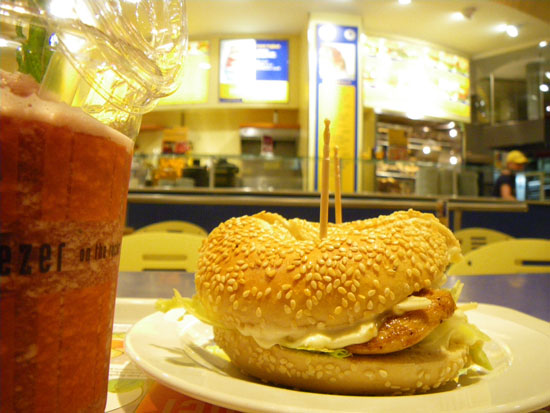 Ich fing erst eine Runde durch die Innenstadt, aß bei den Bagel Brothers einen Chicken Sunrise und ’nen guten Smoothie. Eins der besten Essen für €5,55. Dan mit dem Taxi ging’s zum Club Velvet. Der liegt bissel außerhalb €8+2 Tip. Gute Musik und auch Spaß bis weit nach 4. Nach 5 erst schlafen, netter abend. Mal was anderes gesehen.