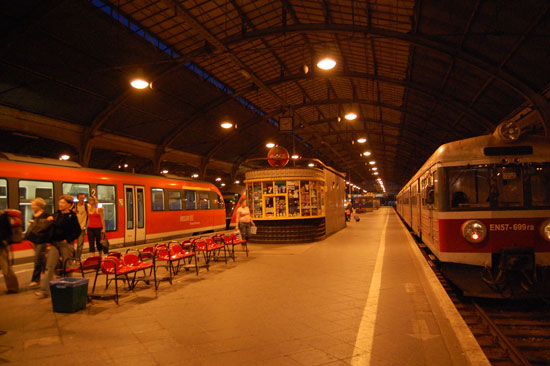 Schnell die Sachen zusammengepackt, um 16:00 fuhr der Zug, der 21:00 dann in Wroclaw eintrifft. Ich wurde zum Bahnhof gefahren und merkte dann beim Fahrkartenkauf, dass ich meine Kamera im Auto vergessen hatte. Es war weg und ich musste zum Zug. Die D40 hatte ich ja noch mit.