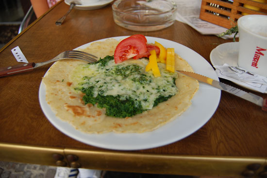 Der Hotelpool sieht gut aus, wird später gecheckt. Frühstück gab’s im Franz Kafka Café. Ich hatte ein Crepe mit Spinat. Sonne lacht für bunte Photos.