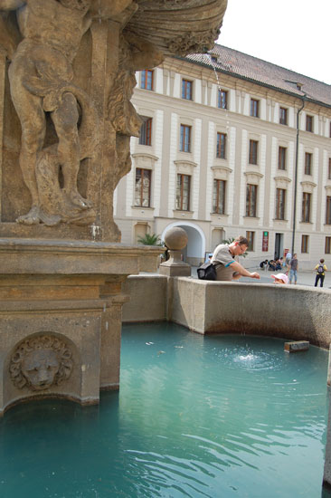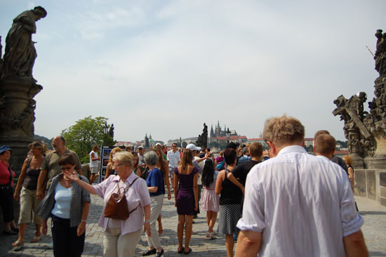 Auf dem Markplatz und durch die Stadt ging es. Viele Touristen, so hatte ich das vorher in Prag gar nicht gesehen. Über die Karlsbrücke hoch auf die Burg mit einem Eis. Der Nikon Akku war nun bald leer und ich hatte auch kein Ladegerät oder Ersatzcamera mit. Erst mal Ende mit schönen scharfen Photos, das K750i macht jetzt für die Dokumentation.