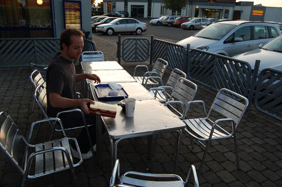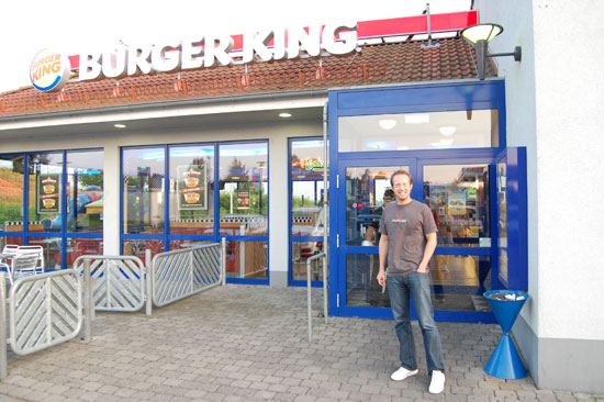 Wir fuhren erst Nachmittag nach Wiesbaden, ich arbeitete noch eine Weile. Die Fahrt ging gut voran. Einmal bei Burger King holte ich ’nen Sixpack. Die Burger schmeckten nur sehr ungesund.