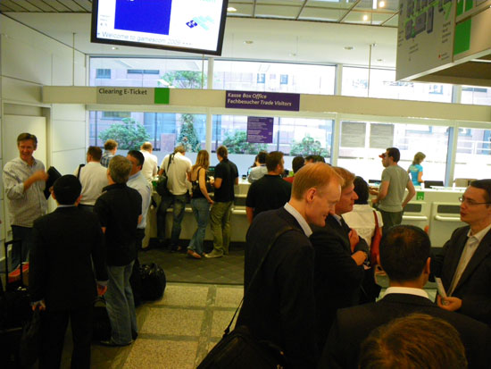 Wir fuhren zur Messe, checkten ein – alles easy. Die Koelnmesse scheint um eine Ecke größer als Leipzig zu sein. Das Business Center war riesig, viele Leute wackelten umher. Gleich da sah ich einen der Londoner von 2007. Er sprach gerade mit einem, sah mich wohl nicht. Bloß schnell weg, nicht wieder lte Sachen hochkommen lassen, wenn ich gerade andere Probleme habe.