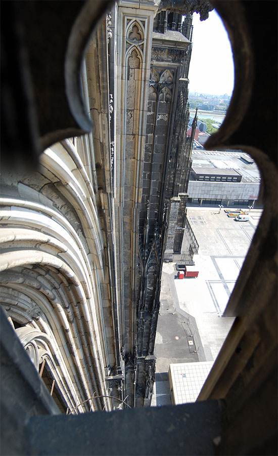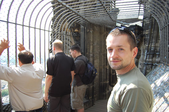 Ich holte mir ein Bauernmelette gleich bei „Oma’s“. So war ich satt, mit einem Saft auch gut gerüstet für die Domtreppen. Wir wollten mal hoch steigen. Mit €2,50 ein günstiger Spaß und auch recht leicht.