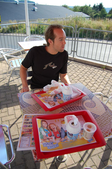 Das Termometer zeigte 36°C draußen an, der BMW war gut klimatisiert. Die Fahrt nach Chemnitz dauerte doch eine Ewigkeit. Ich nickte ab und zu weg. Dann holten wir bei McDonalds was kleines und kamen schließlich nach 7 wieder zu Hause an.