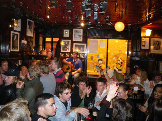 Eine Deutsche ging auch mit was essen. Wir gingen in ein amerikanisches Restaurant. Ganz gut, mit Leuten mal wegzugehen, die nicht auf jeden Euro achten müssen. Ich hatte einen Cider „Bulmers“, den ich so schnell nicht wieder trinken werde. Viel zu süß aber OK mit den Nudeln. Die Australiering hatte ein Treffen, die Deustche war müde und so zog ich alleine noch durch die Gegend, fand viele Pubs und eine gute Stimmung – auch zum Donnerstag. Am Ende sang ich noch mit allen Leuten in der Temple Bar zu Live Musik. U2 und so. Das Hostel „Barnacles“ ist 2 Türen weiter – beste Lage. Dublin find ich super!
