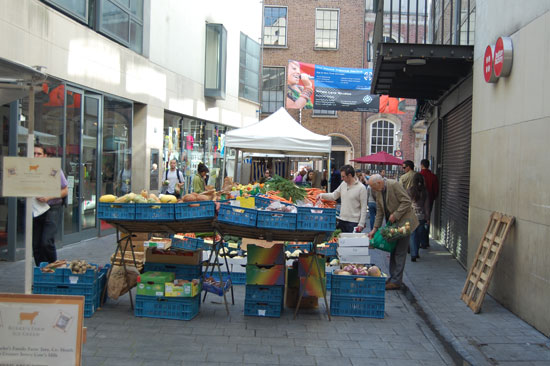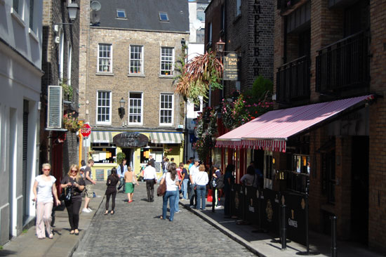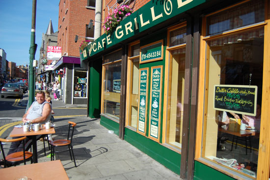Ich spazierte weiter irgendwie Richtung Guiness Storehouse. Das war mein Ziel für heute. Ich kam durch den Liberty Market und setzte mich in ein Café auf ’nen Kuchen und Cappuccino. Dann fand ich die Guiness Gegend,es war vier – davor wollte ich sowieso kein Bier trinken.