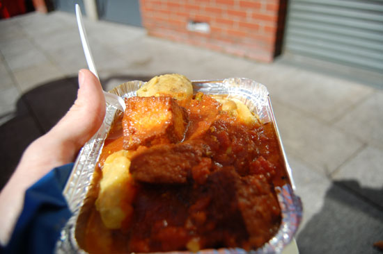 Was für’n Wetter in Irland! Ich fühlte mich gut, das machte mich auch happy. Vor der Tür stolperte ich gleich eine Straße weiter in einen Markt mit allerlei Essen. ich holte mir ein Curry half&half Mix. Sehr gut.