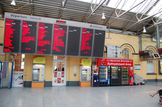 Ich ging wieder raus und wollte über einen Umweg zurck laufen. Auf dem Stadtplan sah das ganz nah aus aber der war in dieser Gegend wirklich niht „to scale“ . Ich lief ewig, kam dann zum Bahnhof. Da checkte ich, dass das Ticket nach Cork €66 kostet. Das ist zu viel, sodass ich wohl doch mit dem Bus fahren werde.