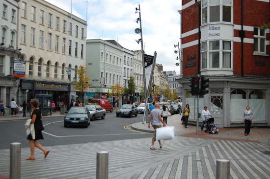 Einige Geschäfte haben geschlossen und es ist etwas weniger los als in Dublin. Viele Leute auf der Straße, der Akzent der Sprache ist lustig.
