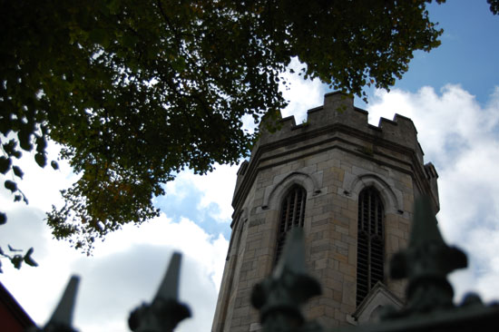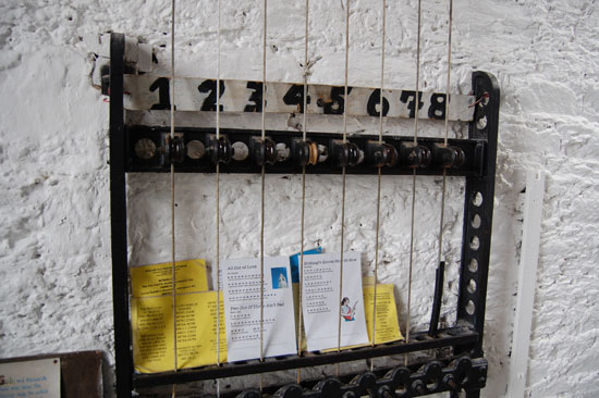 Ich stieg hoch und die Spezialität hier ist, dass man die Glocken selbst leuten kann. Acht verschiedene Glocken erlauben eine Melodie. Ein paar Sequenzen bekannter Lieder waren ausgeschildert. Ich war der einzige im Turm, man musste ganz schön dran ziehen und es bimmelte wirklich.