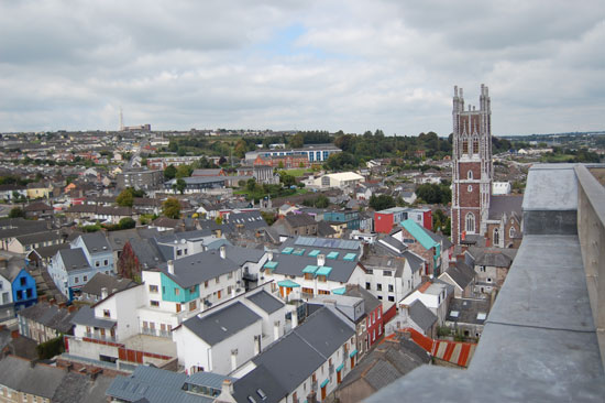 Immer weiter hoch im Kirchturm dachte ich schon, dass da nach dem Uhrwerk und Glockenwerk Schluss sei. Es flatterten ein paar Tauben herum und man konnte wirklich durch den Glockturm eine kleine Leiter ganz nach oben. Dort hatte ich eine schöne Aussicht auf Cork. Ganz alleine.