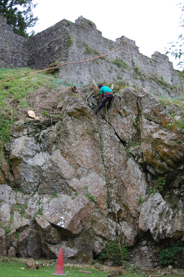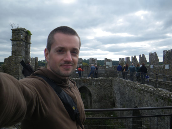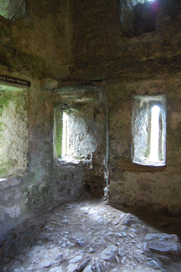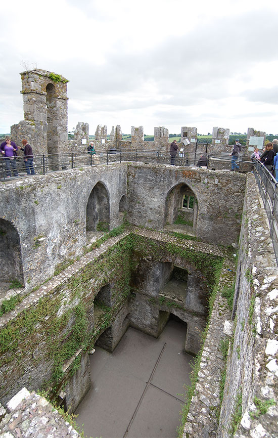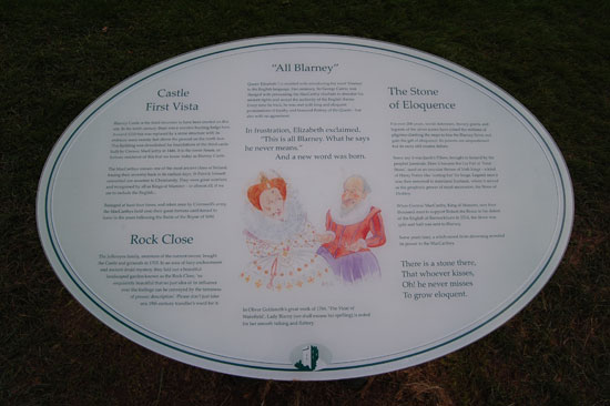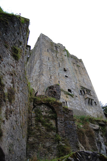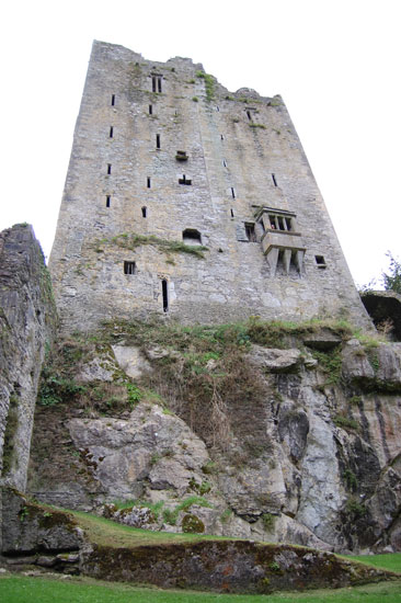 Ich machte schon mal Photos auf Vorrat, die Sucht… Dann stieg ich in der Burg hoch. Viele amerikanische Touristen waren auch da. Das Ziel für jeden war der Blarney Stone. Dieser Stein ist mystisch und wurde oft herumgetragen. Wenn man ihn küsst, wird man beredsam / wortgewandt wie die Iren. Das ist nicht ganz so einfach, da man quasi auf dem Rücken liegend über dem Abrund ist – die Spalte groß genug, um durchzufallen. Ein paar neue Eisenstangen und eine Mann, der einen zur Sicherheit fest hält, machen das heutzutage wenig gefährlich. Ich kann nur sagen, die Kraft des Steins ist unbestritten.