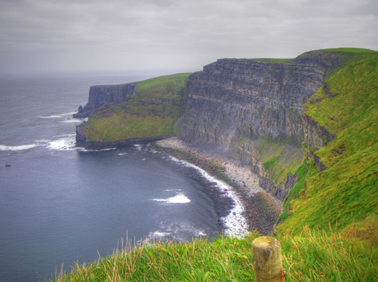 Zeitig wach, denn die Cliffs of Moher wollte ich schon noch sehen, wenn auch unausgeschlafen. Der Bus dahin fuhr um 8. Ich verstaute meine Sachen und sah ihn dann schon vorm Hostel stehen. €2.60 eine Strecke.