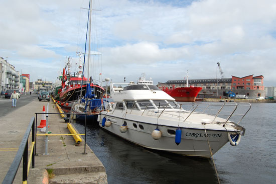 Ich kaufte Postkarten – mit €0,45 sicherlich die teuersten in einem Buchladen. Windig war’s heute, unten an den Docks wehte es mich fast weg.