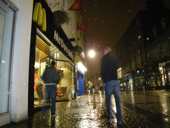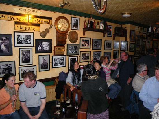 Die Lasagne war nach ’ner halben Stunde auch fertig. Heute gab’s also alles italienisch. Mein Buddle Rum aus Olso leerten wir dann auch mit Cola. Angeheitert gingen wir noch in einen Pub. Mit typisch Irischer Musik war das auch ’ne schöne Erfahrung. Das extra Guiness machte mich aber fertig. Draußen war ganz übles nass-kaltes Wetter. Selbst jetzt machten die Promoter noch Webrung für alle Clubs. Wir gingen in’s CP’s. Zuerst war’s leer, dann um 12 füllte sich die Bude mit Studenten, das es nur krachte.