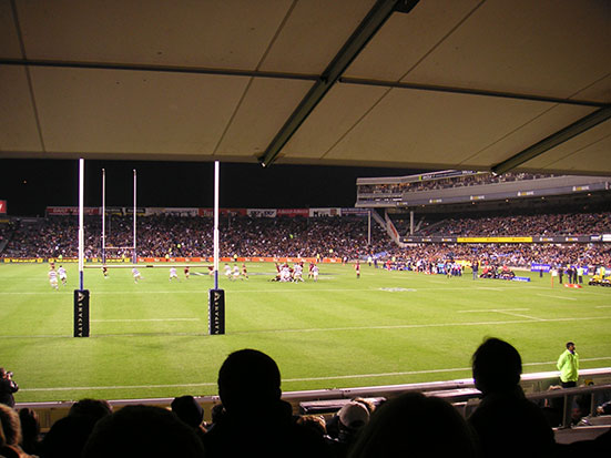 Ich war am Stadion, stellte mich artig in die Reihe und holte mir ein Ticket (NZD $20). Mein erste Rugby Spiel in live!! Ich suchte meinen Platz (genau hinterm Tor).