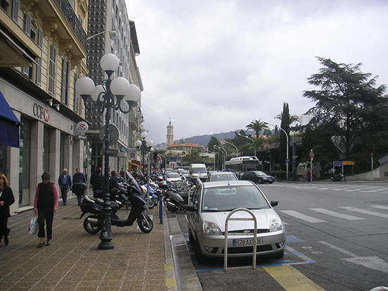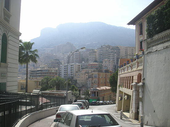 Die Straße nach Monaco / Monte Carlo schlängelte sich durch die Berge. Wenig später (29 km) kam schon das Ortseingangsschild. Auch in Monaco das gleiche Spiel mit Straßen und Parkplätzen. Alles sehr klein und mega-eng bebaut. Am Casino standen die teuersten Autos herum, parken konnte man fast nirgens. Nach etlichen Runden in der Gegend fanden wir doch was.