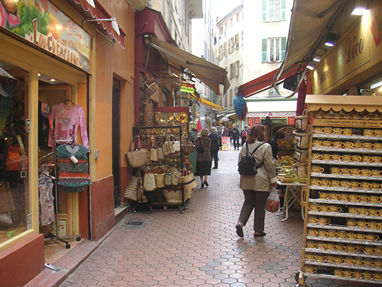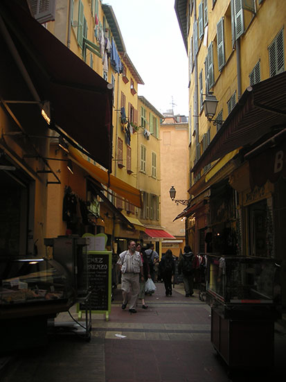 In der schönen Altstadt von Nizza setzten wir uns vor einen Baguett-Laden. Ich hatte noch einen Apfelkuchen zusätzlich, die Brote lecker — nun war alles bestens. Später fanden wir den bekannten Blumen-Markt der Stadt. Insgesamt sieht’s da überall recht hübsch aus.