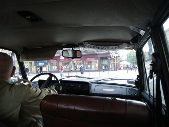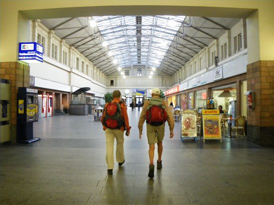 Ich musste ’ne Weile warten, bis die Rezeption wieder besetzt war. Den Zug um 13:05 wollte ich nicht verpassen. Endlich 20 Zloty Pfand zurück, ging ich schnell, fand die Taxis. Ein uralter Lada fuhr mich zum Bahnhof – ohne Taxometer.