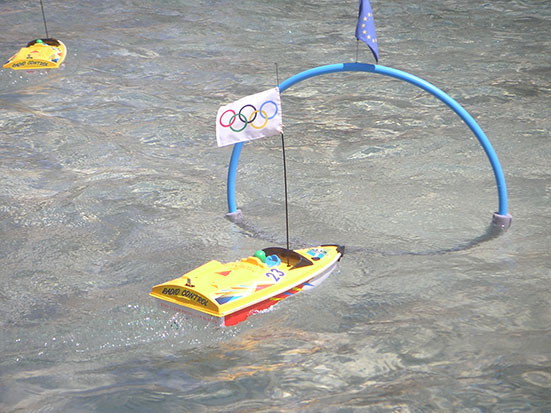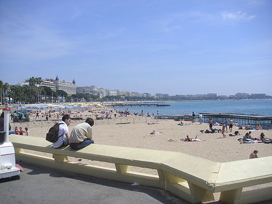 Wir checkten kurz nach 12 im Hotel aus. Der Lärm vor der Tür wurde Nachts durch die schalldichten Fenster abgeblockt, hatten gut geschlafen. Dann zu „Mister Sandwich’s“ auf ein Baguette und dann kurz durch die Innenstadt. Viele Geschäfte wie in Nizza und auch einige Touristen. Wir gingen eine ähnliche Strecke wie noch in der Nacht, jetzt lebte endlich alles. In einem Brunnen konnte man mit ferngesteuerten Rennbooten spielen, dann gingen wir zum Festspielhaus und drehten über den Strand wieder Richtung Hotel, wo noch das Auto parkte.