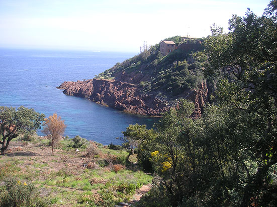 Weiter gings am Wasser. Der Routenplaner lotste uns auf die geschlängelten Bergstraßen. Wunderschöne Landschaft mit unzähligen Kurven. Dadurch ging es langsam voran. So konnte man auch richtig die Umgebung genießen. Es sah aus, wie man sich Südfrankreich, die Cote d’Azur eben vorstellt. In den Felsen standen Villen, Wald und das alles am Mittelmeer bei Sonnenschein.