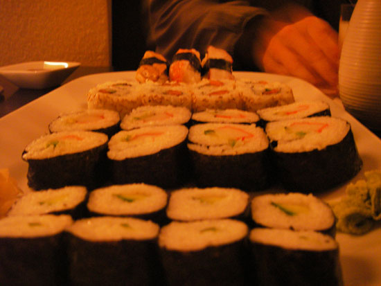 Ich redete kurz mit den Russen. Unser 3D Programmierer meldete sich doch mal. Noch ist nicht alles verloren. Wir gingen gegen 18:00 Sushi essen. Die Bedienung heute sehr freundlich. Wir nahmen das Friends Menü, das für 2 Personen gut reichte, weil mein Bruder nur wenig aß.