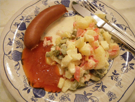 Zu Hause bekam ich Kartoffelsalat mit Kartoffeln aus eigener Ernte. Danke.