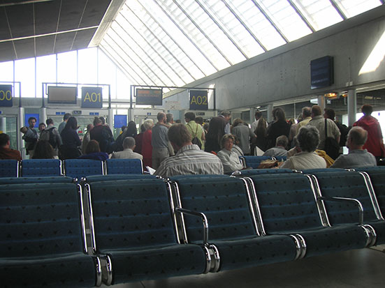Bei Europcar standen heute eine Menge Leute. Wenn die alle ein Auto mieten wollen, oje… Das Wetter war wunderschön und so wartet es sich wohl ganz OK da draussen. Bei uns dauerte es mit 3 Leuten schon eine halbe Stunde, die Neuen da hatten also noch einige vor sich.