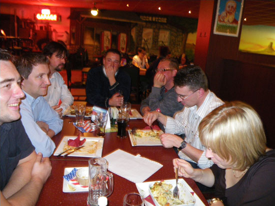 Statt über 20 Leuten waren dieses Ml nur 8 (inlc. mir). Viele wussten es wohl nicht oder mussten sich entschuldigen. Wir waren in der American Sportsbar bowlen, dann noch zu einem guten Abendessen. Nach dem letzten Treffen vor 2 Jahren hat sich wenig geändert, außer eben viel mehr Nachwuchs.