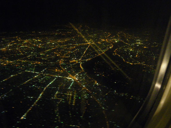 Da war ich in Schönefeld mit viel Zeit. Ich holte mir eine schöne scharfe Currywurst. Mit Brötchen €3,60 unter den teuersten sicherlich in Deutschland. Dann saß ich etwas aufm Flughafen, hörte Atlas Shrugged und spielte iPhone. Mit Egypt Air ging’s dann los. Das Essen war leider kalt, mir aber egal. Mit der inzwischen heftigen Müdigkeit schlief ich gut und wachte kurz vorm Überflug über Alexandria auf.
