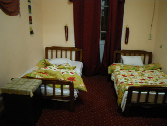 Mein Hotel „De la Paix“ fand ich nicht auf Anhieb. Da die Straßennahmen auf Arabisch geschrieben sind, sah ich an einer Bank mit Adresse, dass ich schon auf der richtigen Straße war, nur die Hausnummer fehlte. An einem Kiosk konnte man mir mit Einblick auf ’ne Karte weiterhelfen, so war das Hotel schnell gefunden.