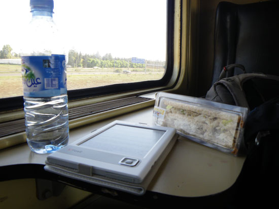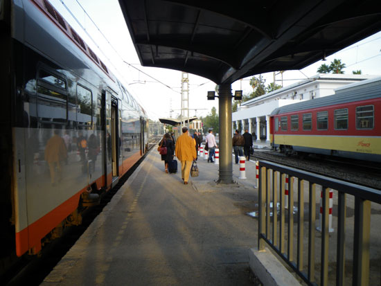 Im vollen Flieger schlief ich sehr gut auf meinem Fensterplatz. In Marokko dann gegen 11:00 war auch alles easy. Ich sah einen Zug nach Fez für 13:00 angekündigt, kaufte ein Ticket, stieg in Casablanca Voyages um. Der Doppelstock-Zug sah wie ein Regionalexpress in Deustchland aus. Es ging vorbei an vielen Dörfern und Häusern mit Satelliten-Schüsseln. Die Fahrt nach Fez dauerte ein paar Stunden – wohl 4, in denen ich las und am Ende auch ab und zu wegnickte.