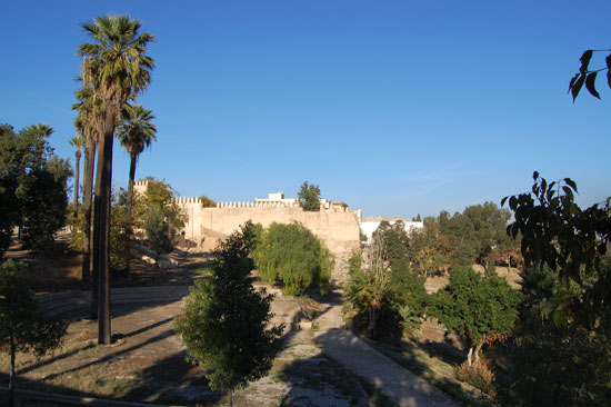 In der Medina kann man wirklich verloren gehen, ganz so riesig schien sie aber nicht und es macht ja wenigsten bei Tageslicht auch Spaß, mal die ganzen verschlungenen Weg zu folgen. Ich lief aber erst mal die Hauptstraße entlang mit ’nem haufen Schuh und Klamottenläden. Dann vorbei an einem schönen Garten, der geschlossen war und dann wirklich durch die Gassen. Touristen sah ich nur ganz wenige, deshalb fiel ich etwas auf.