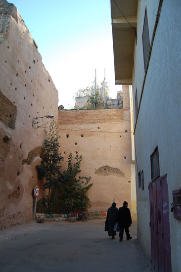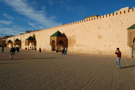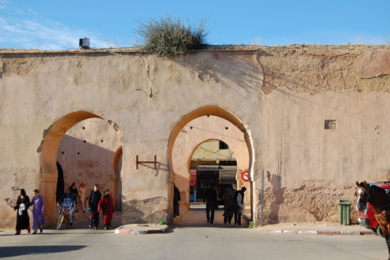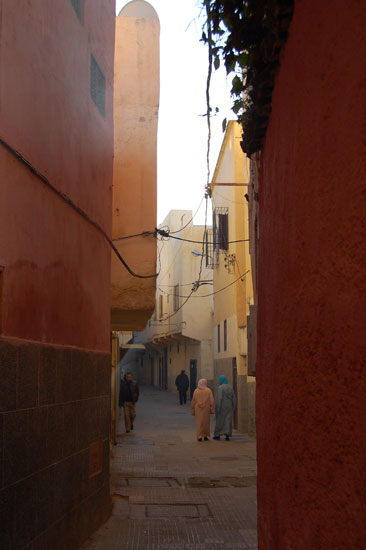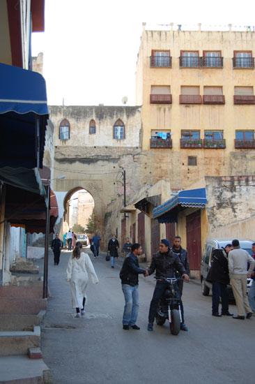 Die Alstädte hier gleichen sich doch stark. In Fez war alles ein wenig enger und chaotischer. Hier in Meknes schien es relativ normal und locker zuzugehen, wenn ich auch mehr islamische Ernsthaftigkeit sah. Eine Moschee war nur für Muslime. Ich war lange in keiner. Leute sprechen mich aber auch an. Einer wollte scheinbar „was zu rauchen“ verkaufen.