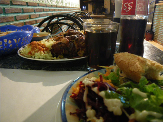 Auf dem Weg aß ich mal bei McDonalds. Ich hatte nur 200 MAD Scheine, die ich wohl kaum woanders leichter los geworden wäre. Die meisten Essen in Cafés kosten unter 20 MAD (€1.60).