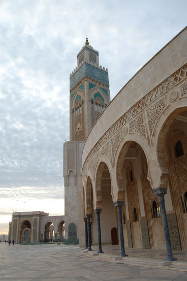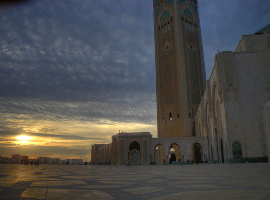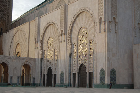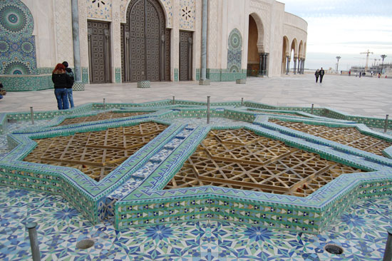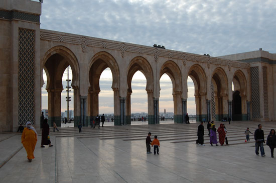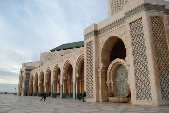 Ich spazierte los, kurz durch die Medina, hoch zum Hassan V Platz und dann Richtung Hafen. Mein Ziel war die Hassan II Moschee. Die fand ich nicht so schnell, nahm ein Petit-Taxi (7 MAD) und war dann dort. Ich war doch etwas beeindruckt von der Größe. Casablanca mag zwar nicht so schön sein aber dieser Bau war schon was. Rein durfte ich als Nicht-Muslim wieder nicht, die sind da sehr pingelig.