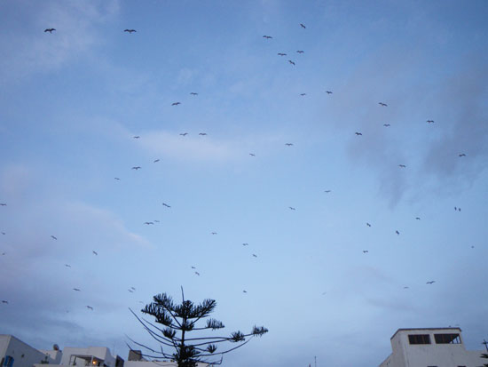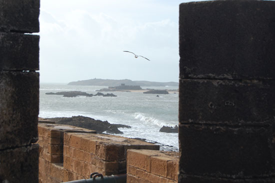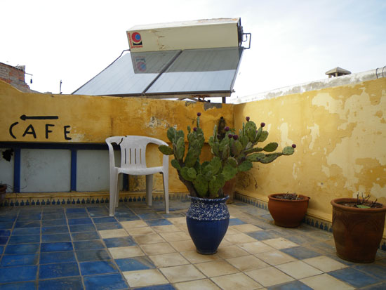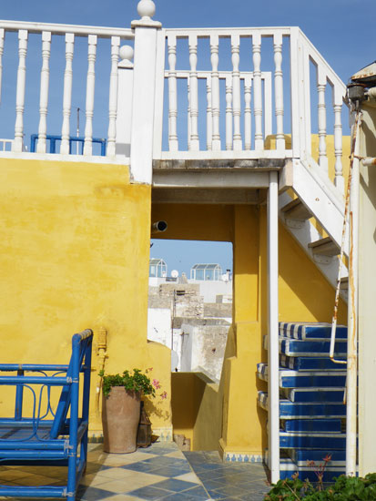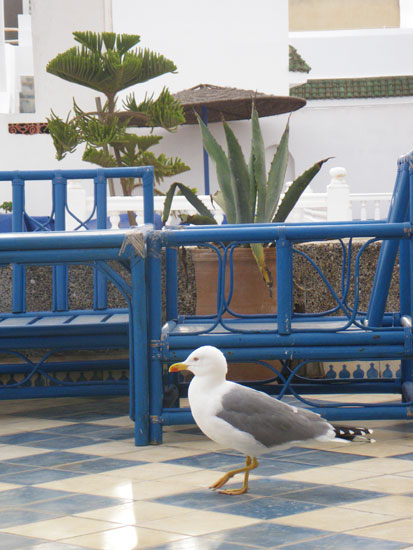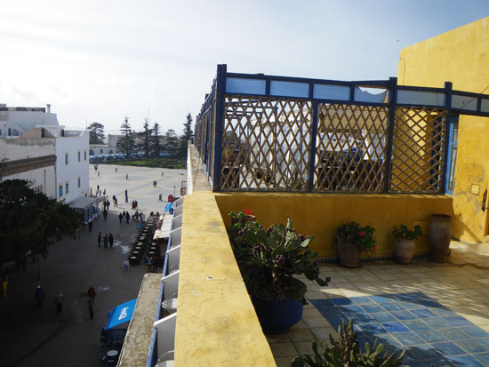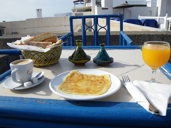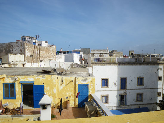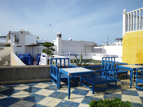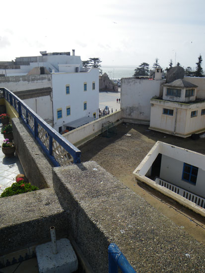 Auf der Dachterasse machte mir jemand noch ein Frühstück (MAD 20). Es war windig aber das Frühstück über den Dächern Essaouias war super. Ich packte meine Sachen und war 12:00 draußen.