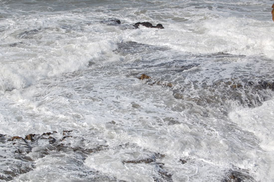 Da spazierte ich noch eine Weile herum, der Bus um 12:30 war weg. Ich ging auf eine Befestigungsanlage mit Kanonen, Möven kreisten umher und hohe Wellen krachten auf Fels.