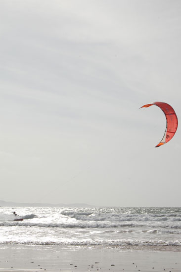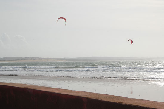 Da setzte ich mich an den Strand. Die Stadt machte heute dem Namen „Wind City Africa“ alle Ehre. Kite-Surfer zeigten ihre Kunst.