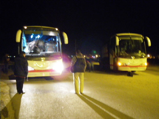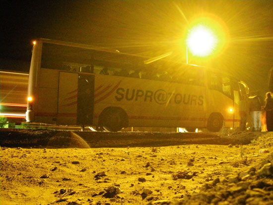 Mir meinen Sachen zum Busstop, eingecheckt und auf gings. Schokolade und Snickers brachten mich über’n Hunger. Dann nach ca. 1 1/2 h Fahrt war auf einmal Schluss. Der Bus stand auf der STraßenseite und regte sich nicht mehr. Ein paar Deutsche, die ich nicht ansprach ningelten. Da saßen wie, ich machte ein paar Photos vom Sternenhimmel und erst gegen 22:00 kam der Ersatzbus. Der iPod Touch vertrödelte mir die Zeit.
