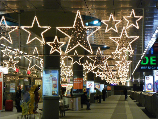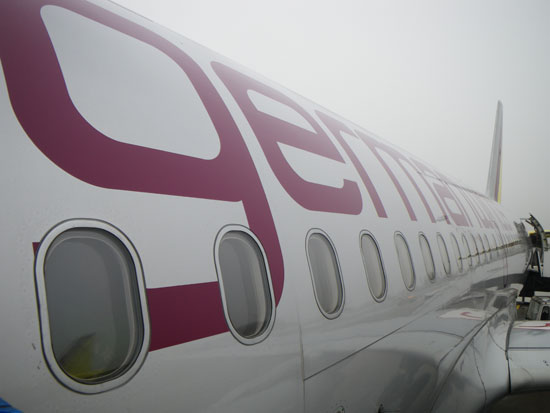 Nach Leipzig per Express. Dort dann in den ICE. Ich hatte von GermanWings ein Ticket zum Flug für €25. Das wurde jedes Mal vom Schaffner eingescannt und die VISA auch überprüft. Der ICE fuhr nur bis Berllin Südkreuz. Statt aber per S-Bahn nach Schönefeld zu fahren, ging’s doch erst zum Hauptbahnhof – Mc Donald’s MorningWrap – dann mit dem RE nach Schönefeld. Eine große Masse von Menschen bewegte sich auf den Flughafen zu – die ganzen Koffer-Rollen machten den Soundtrack.