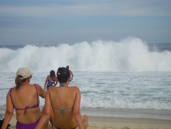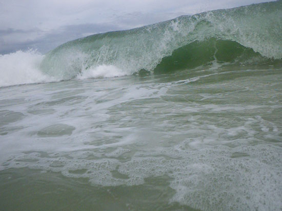 Zwischendruch ging ich kurz an den Strand. Als ich im Wasser heromtollte – immer auf der Suche nach besssren Wellenphotos – kam ein Mädel und winkte, sagte irgendwas brasilianisches. Ich verstand natürlich kein Wort aber irgendwas mit meinen Flip-Flops war da wohl. Sie hatten mein T-Shirt und die Flip-Flops zu sich genommen, wohl eil große Wellen sie sonst weggespült hätten. Ich hatte viel Geld im T-Shirt versteckt – alles noch da, Obrigado! Ja, so nett sind manche zu Gringos. Ich hörte nur nebenbei mit dass von anderen was geklaut wurde – die Camera.