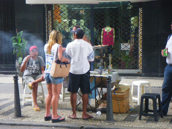 Einen kleinen Imbiss in einem Straßencafé, dann mit dem Taxi zum „Bunker“. Diesen Club gab’s aber nicht mehr. An der gelichen Stelle waren jetzt zwei Clubs: einer für Schwule und einer für Lesben. Ich drehte eine Runde um den Block, leicht unsicheres Gefühl. Ich ging nochmal zum Bouncer und fragte, was sonst noch so in der nähe ist – non-homo. Er verwies mich an ’nen Taxifahrer, der gerade einen Imbiss hatte. Der überlegte etwas sagte – „Meelch“, wovon ich irgendwie gehört hatte. Für 15 R$ fix ging’s dahin nach Ipanema. Die Kopie meines Passes gab ich hin, die Daten wurden eingetragen und ich bekam eine Karte zum später bezahlen.