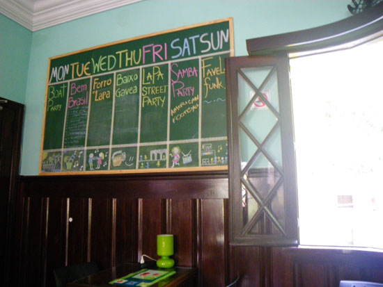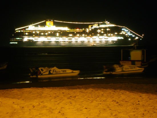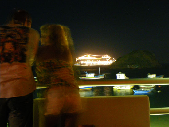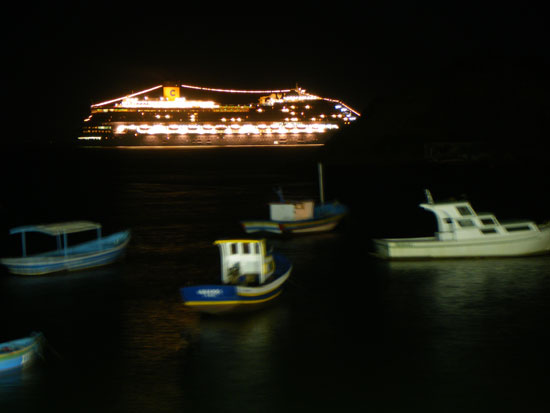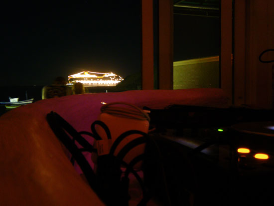 Da war ich dann auch, nach 2. Ich musste mich erst hinlegen, bevor ich mich nochmal aufrappeln konnte. Im Halbschlaf tanzte ich durch die Nacht. Selbst zum Sonntag war es ganz nett gefüllt. Viele junge und wohl auch reiche Leute. Eine etwas andere Atmosphäre als in Rio. Das wohl kleinste Pacha aber heute mit einer genialen Aussicht. Ein Kreuzfahrtschiff lag vor Anker – hell beleuchtet quasi vor der Tür. Die Musik war auch gut, Saxophon live manchmal drüber. Kein Alkohol – nur 2 Tonic und damit um die R$ 40 ($30 ermäßigt Eintritt). War erst gegen 5 wieder im Hostel. Motivation zur Arbeit gibt’s nun aber wenig Energie.