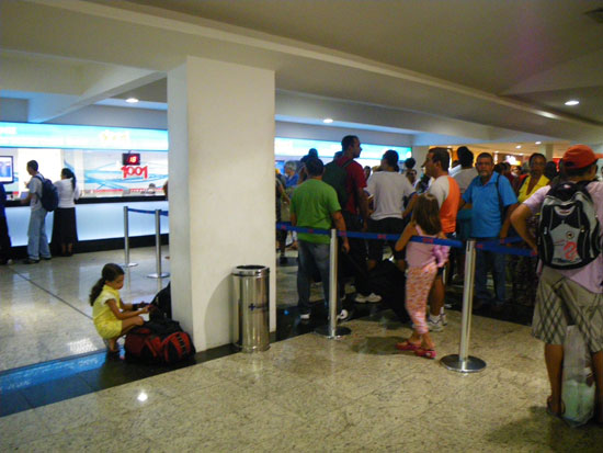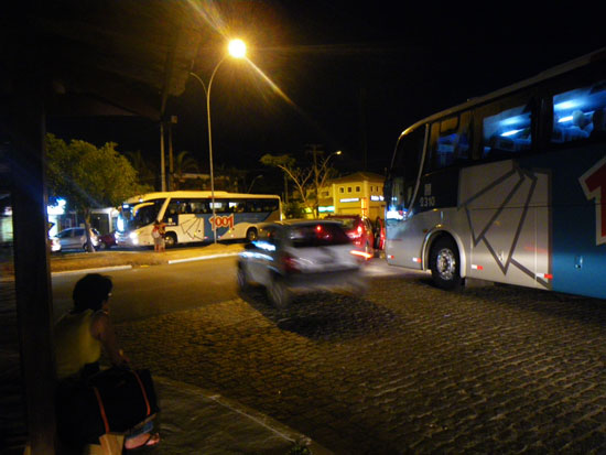 Mit dem Taxi zum Busbahnhof, vorbei am Sambadrom – R$ 24. Vor dem Schalter von 1001 war eine gigantisch lange Schlange. Ich stand fast ’ne halbe Stunde. Meine VISA Karte ging weider nicht durch. Wir abgezählt reichte mein Geld fast genau für die etwa R$ 65 Round-Trip.