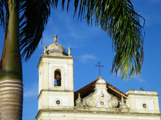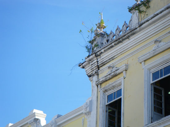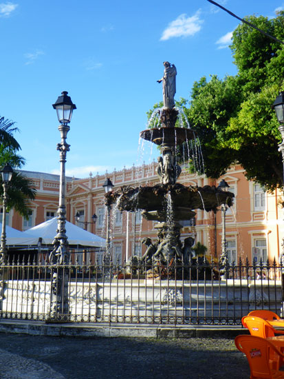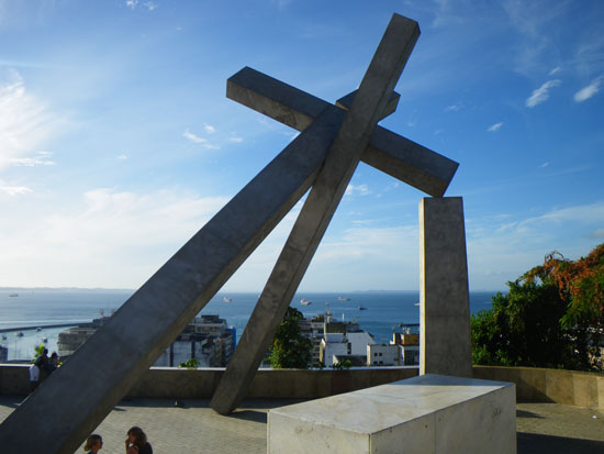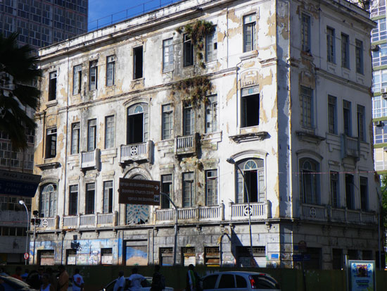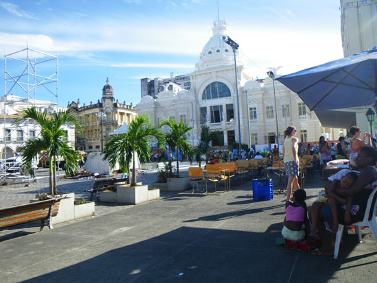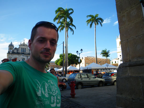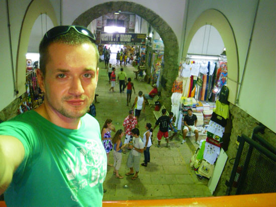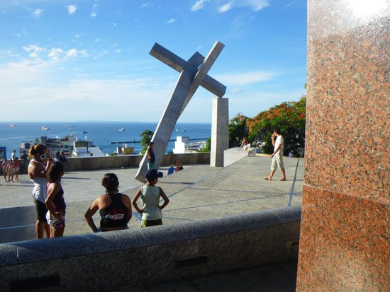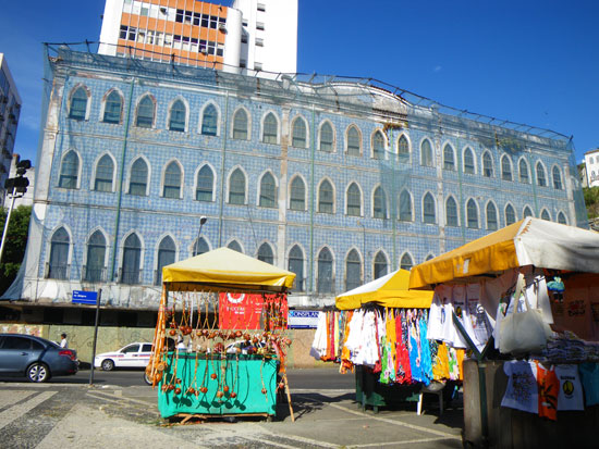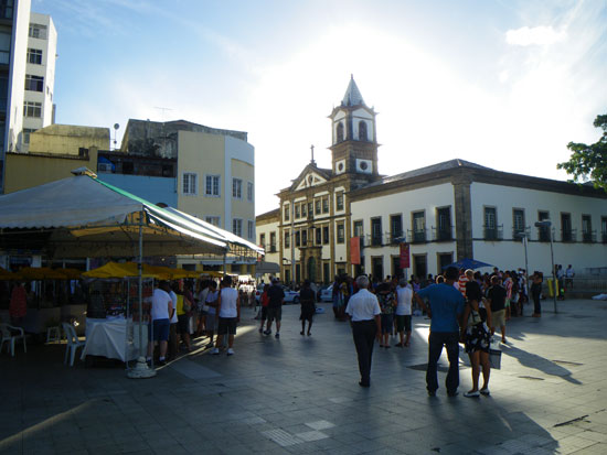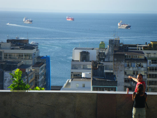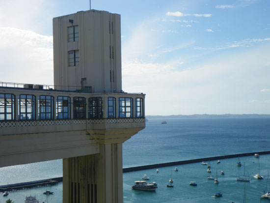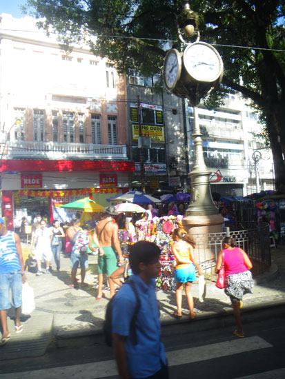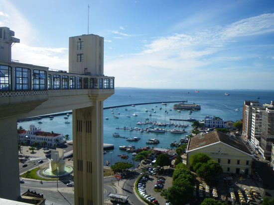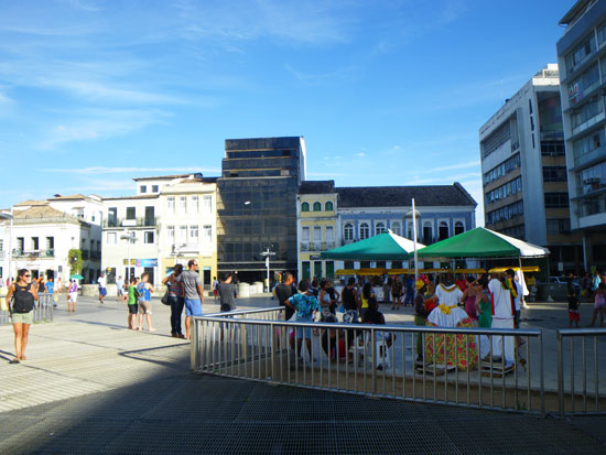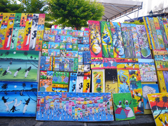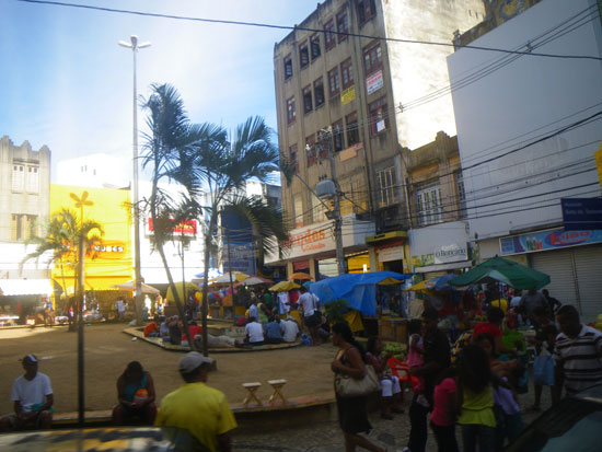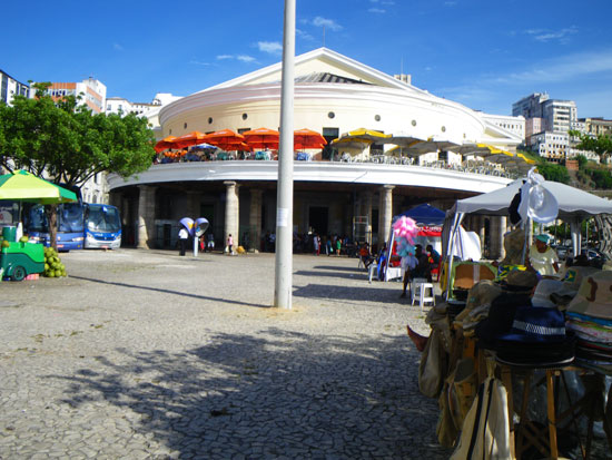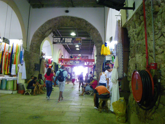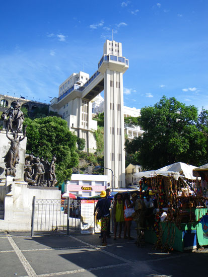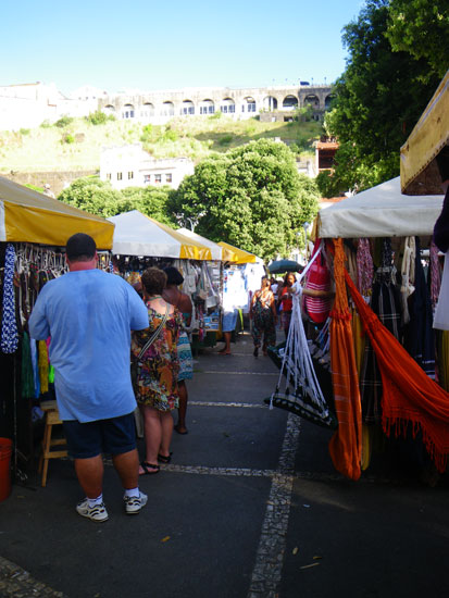 Wir fuhren alle zusammen mit dem Bus in die Altstadt (Pelorinho). Ich hatte etwas Bammel, ist dies doch ein gefährliches Pflaster hier. Alleine sollte man nicht gehen und wir hatten eine Karte, auf denen die spärlichen „sicheren“ Straßen eingezeichnet waren. Mit diesem Vorwissen war ich etwas verkrampft. Wir fuhren mit ’nem Aufzug runter (R$ 0.15) und gingen über einen Touristenmarkt und dann den Markt. Mit viel Sicherheitspersonal und Touristen schien das gar nicht extrem. Ich hätte schon einige Sachen dort kaufen können. Am Ende holte ich mir nur ’ne Cocosnuss – immer eine gute Erfrischung.