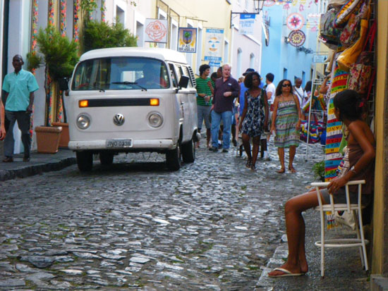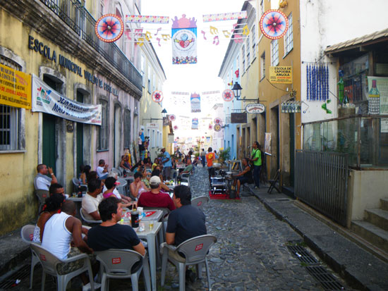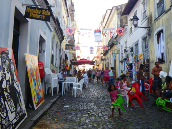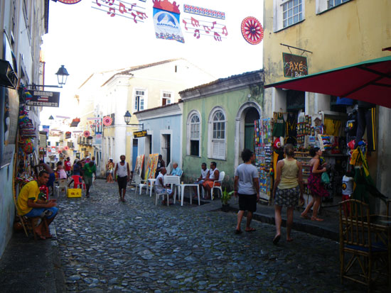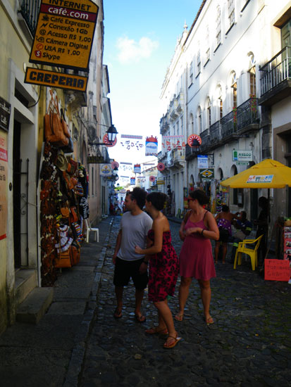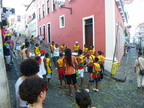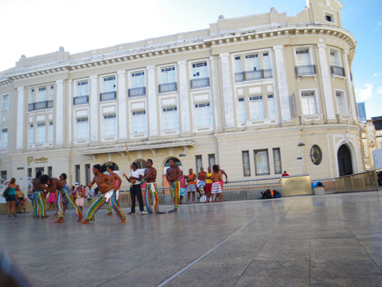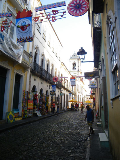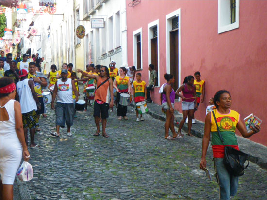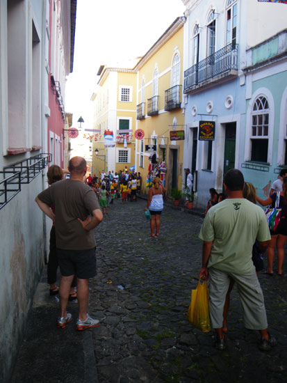 Wieder hoch ging’s durch das historische Salvador. Viele bunte Häuser, Caiporeia Vorführungen und eine doch ganz gute Atmosphäre. Mir gefiel es sehr gut. Alles war so farbenfroh!