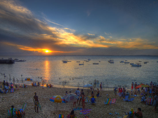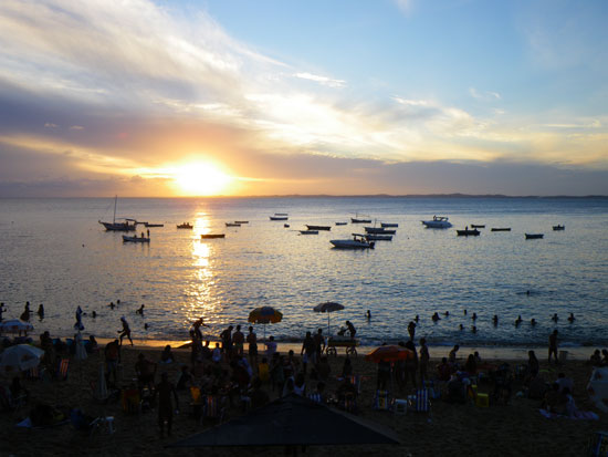 In einer Straße übte eine Trommelband mit ganz schöner Lautstärke. Die Sonne ging langsam unter und so machten wir uns auf den Heimweg. Ein Taxi brachte uns für R$15 ein Stückchen. Am Strand schauten wir uns den Sonnenuntergng an, während Leute am Strand zu Musik tanzten und eine gute Zeit hatten.