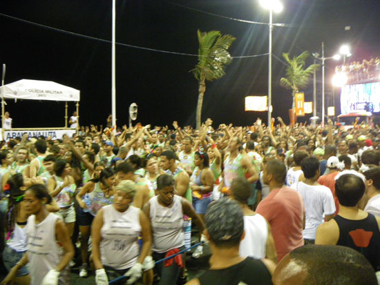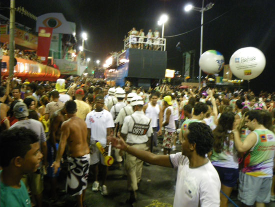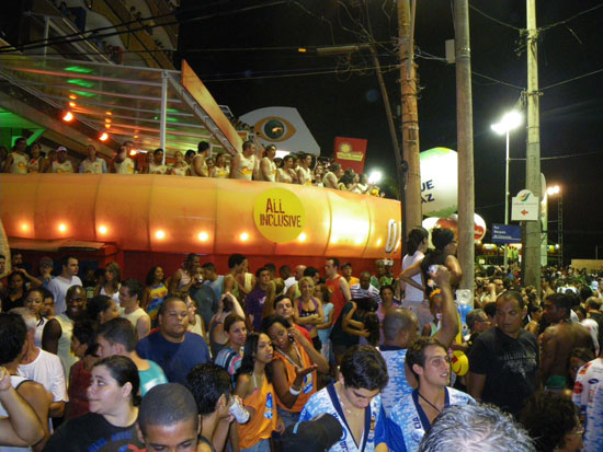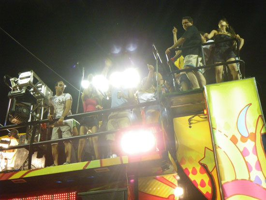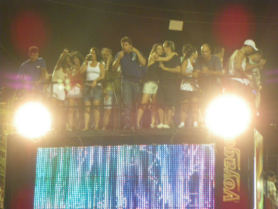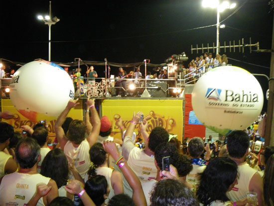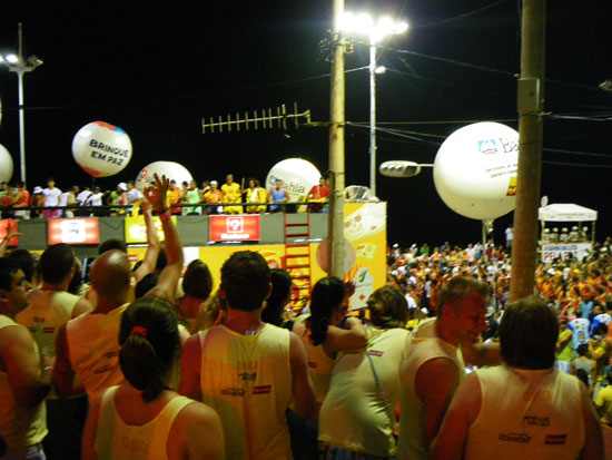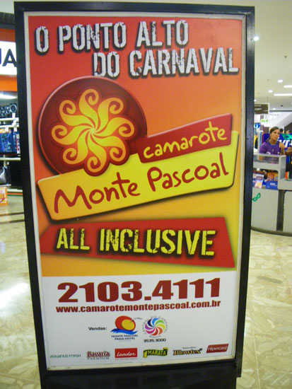 Ein junger Australier, der Portugiesisch spricht wollte auch Camarote T-Shirt kaufen Wir gingen in die Mall, wo einige Stände aufgebaut waren. Die camarote sind große Balkone mit einer Disco drin. Man kann dort dem Trieber auf der Straße sicher beiwohnen. Bei um die $400 Reais pro Tag waren die Preise doch heftig. Im Hopstel wurde die Mone Pascoal empfohlen. Am Hotel kauften wir die Eintritts-T-Shirts für R$ 270 (ca. €110).